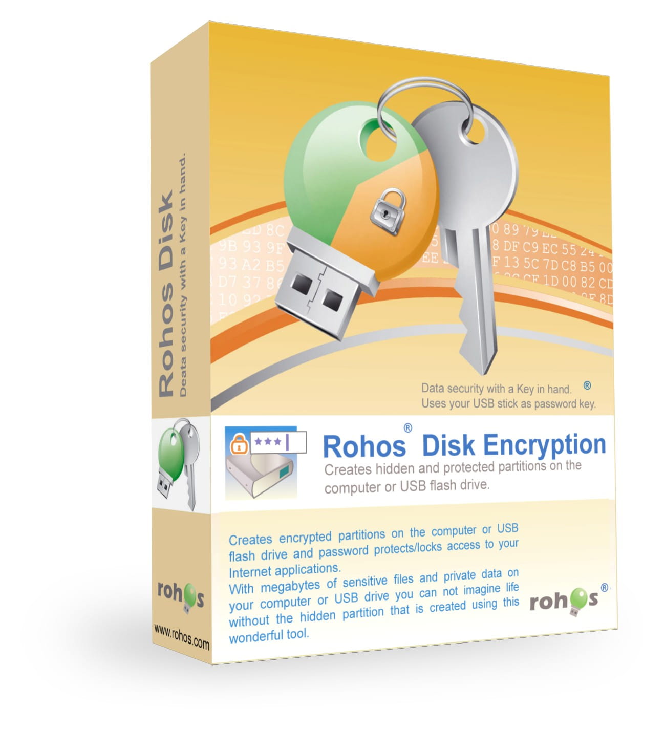 Dysk Rohos używa zatwierdzonego przez NIST algorytmu szyfrowania AES i 256-bitowego klucza szyfrowania. Szyfrowanie odbywa się automatycznie i na bieżąco.